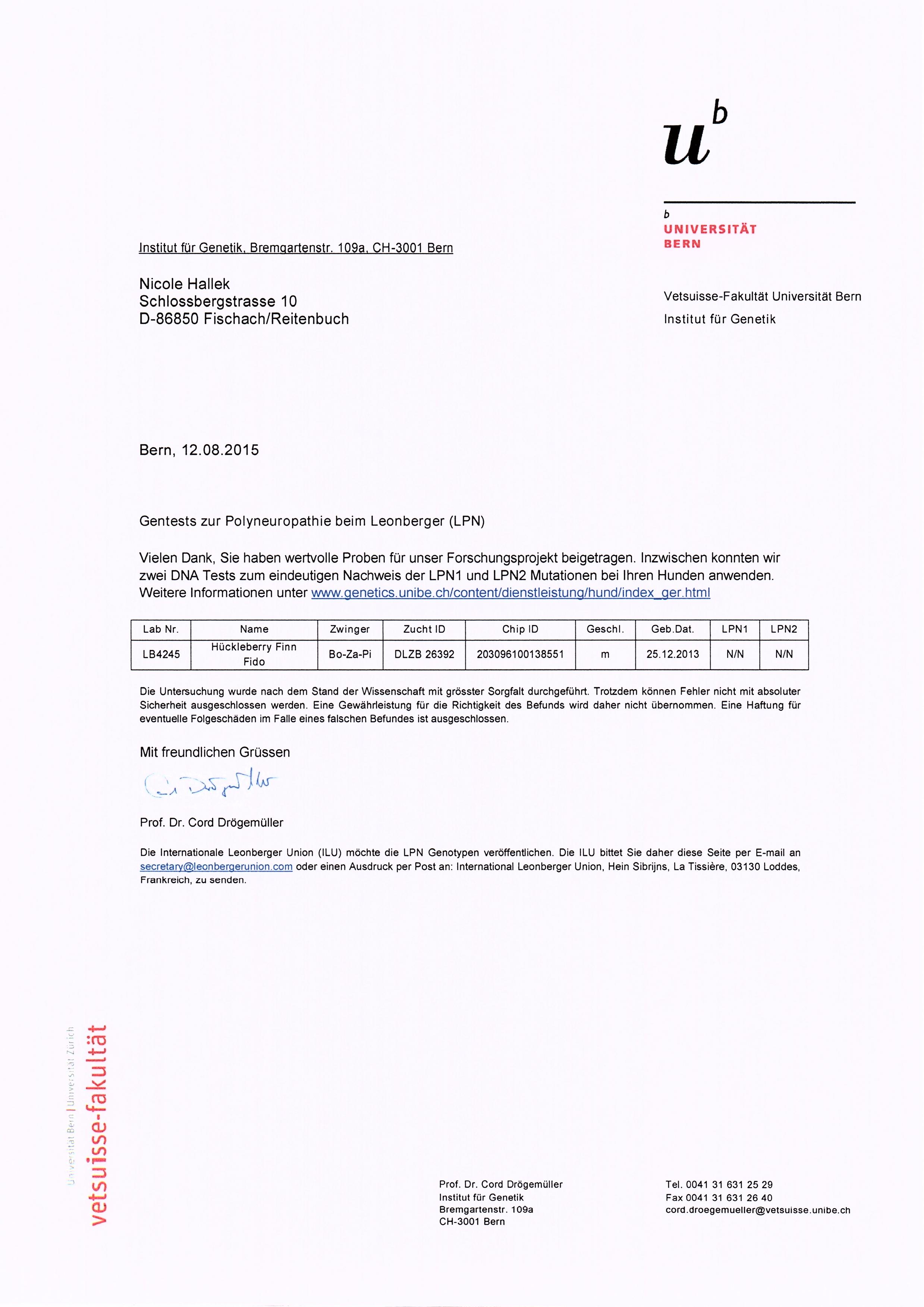 | LPN1 Testergebnis | N/N | ||