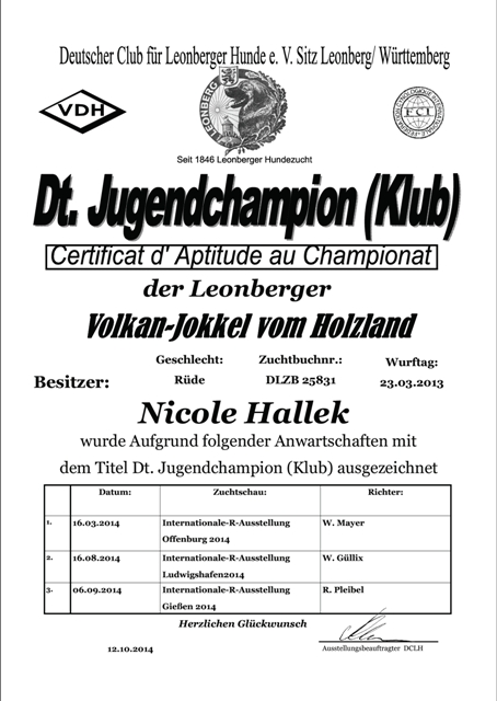 Deutscher Jugendchampion VDH |