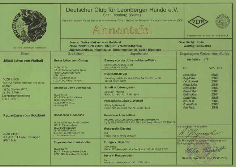 Wurftag: 23.03.2013 Zuchtbuch-Nr. DLZB 25831 |