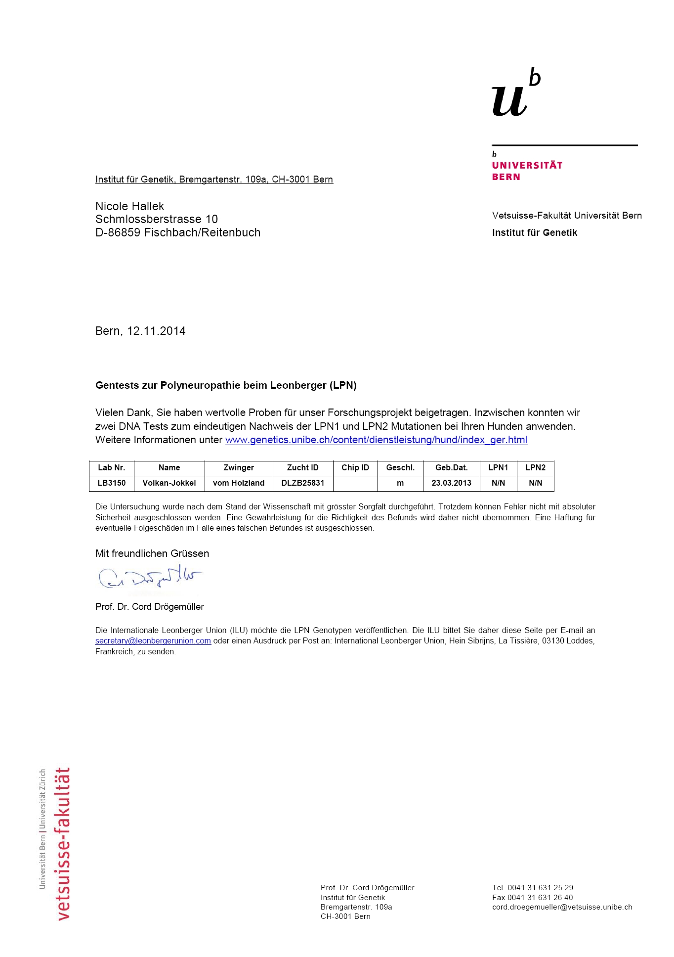 | LPN1 Testergebnis | N/N negativ | |