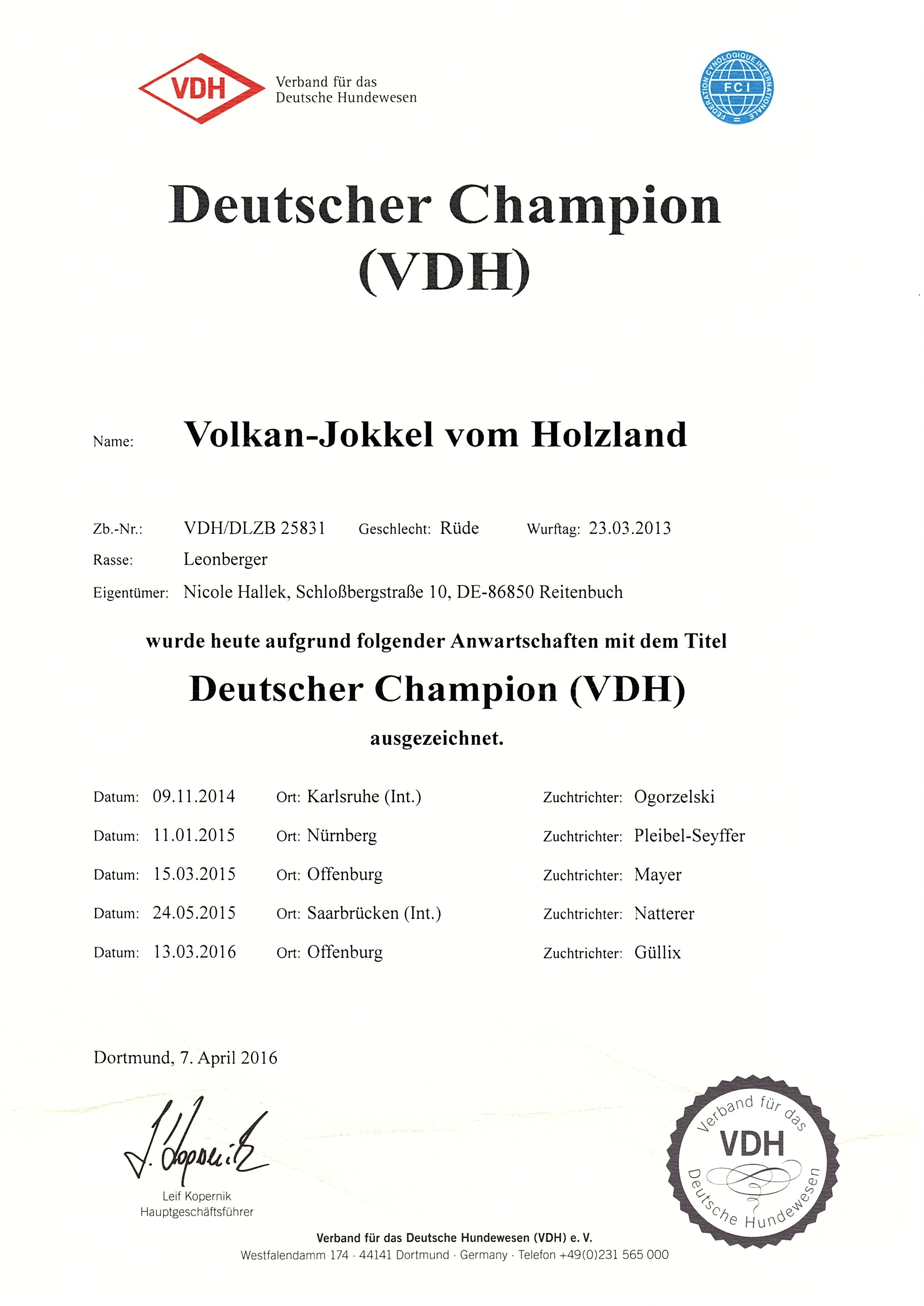 ![]() Deutscher Champion VDH |